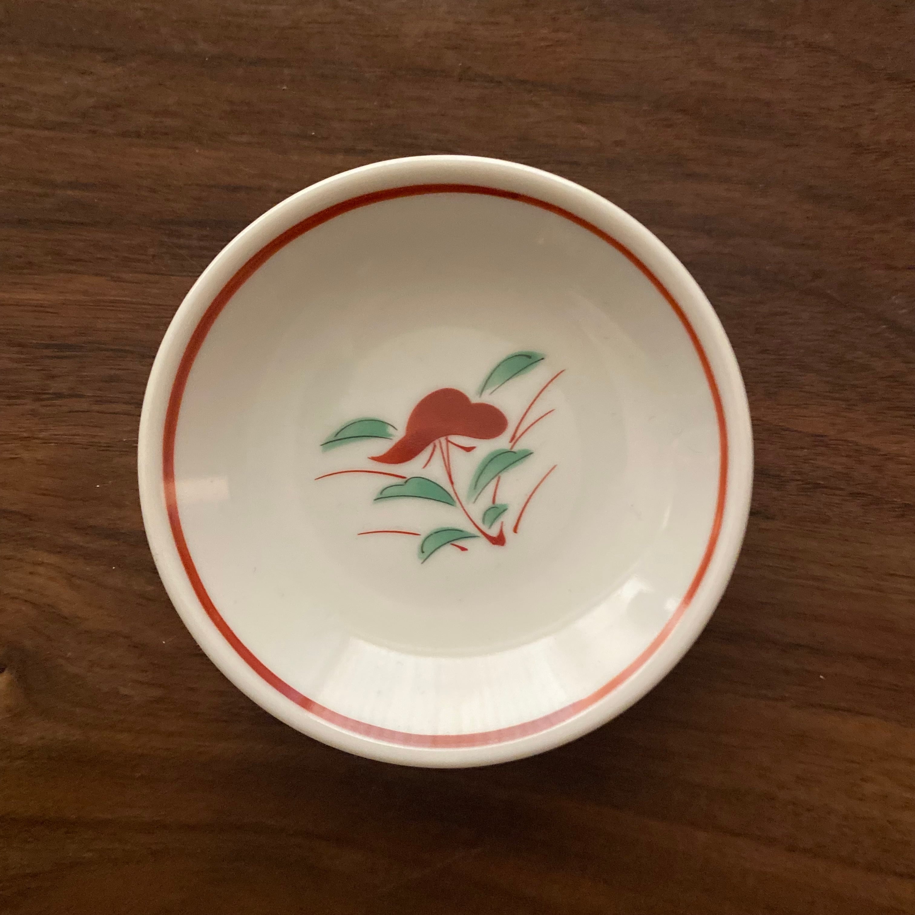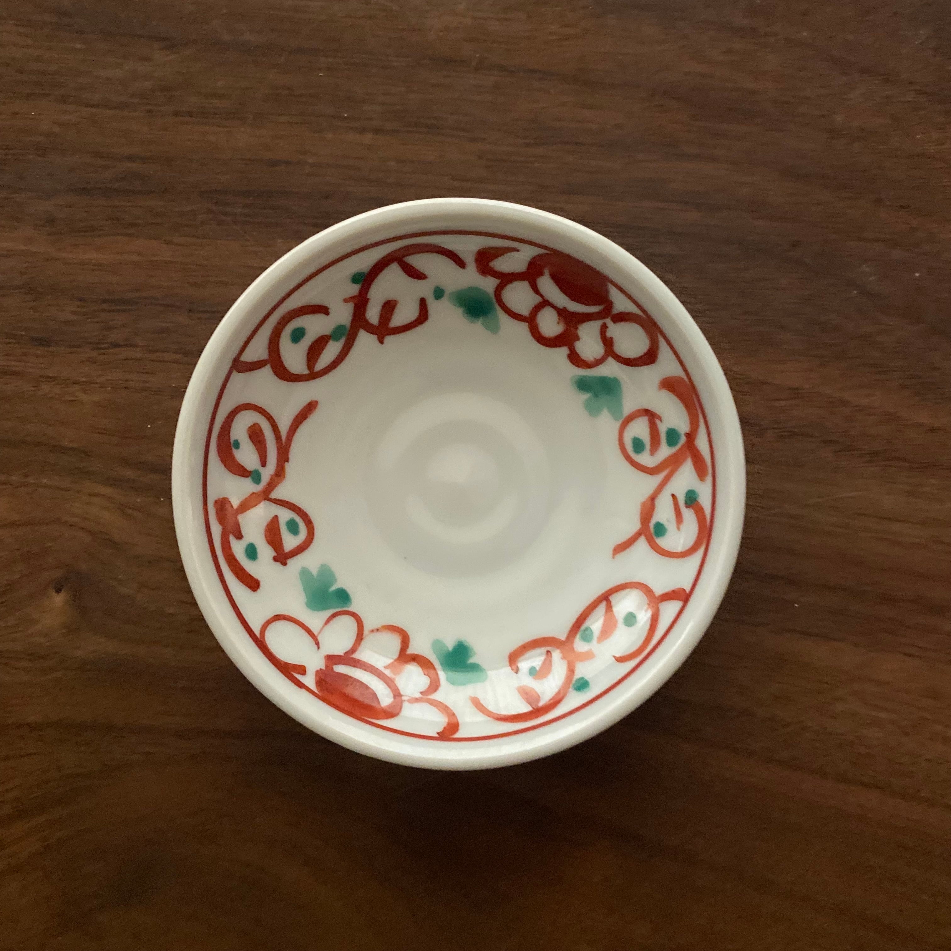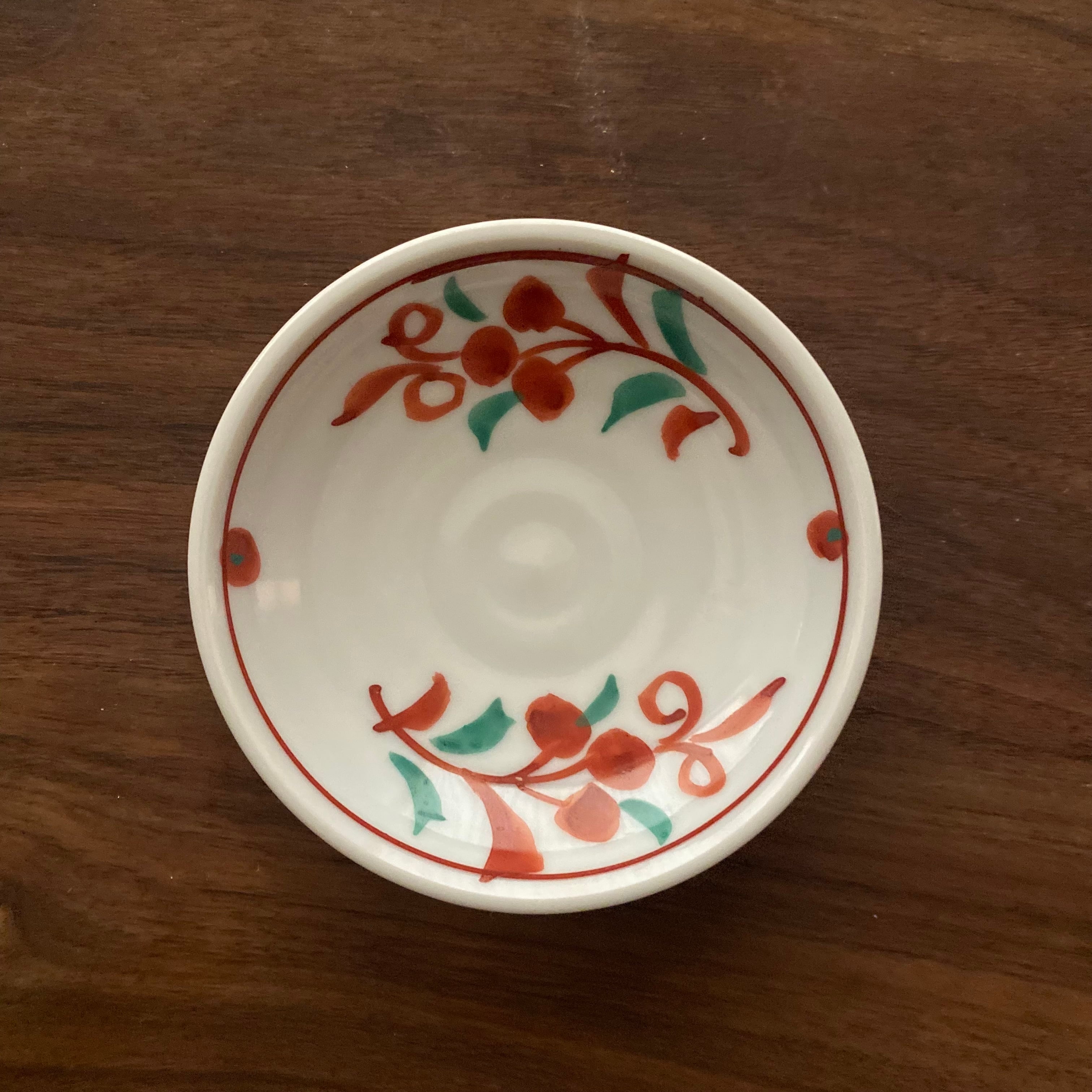 豆皿セット【赤絵異彩】。人気の赤絵模様が施された5枚セットです。呉須赤絵鳳凰、玉花絵、菊唐草、赤絵菊豆皿&花豆皿の6種類。サイズはΦ9.〜13cmです。