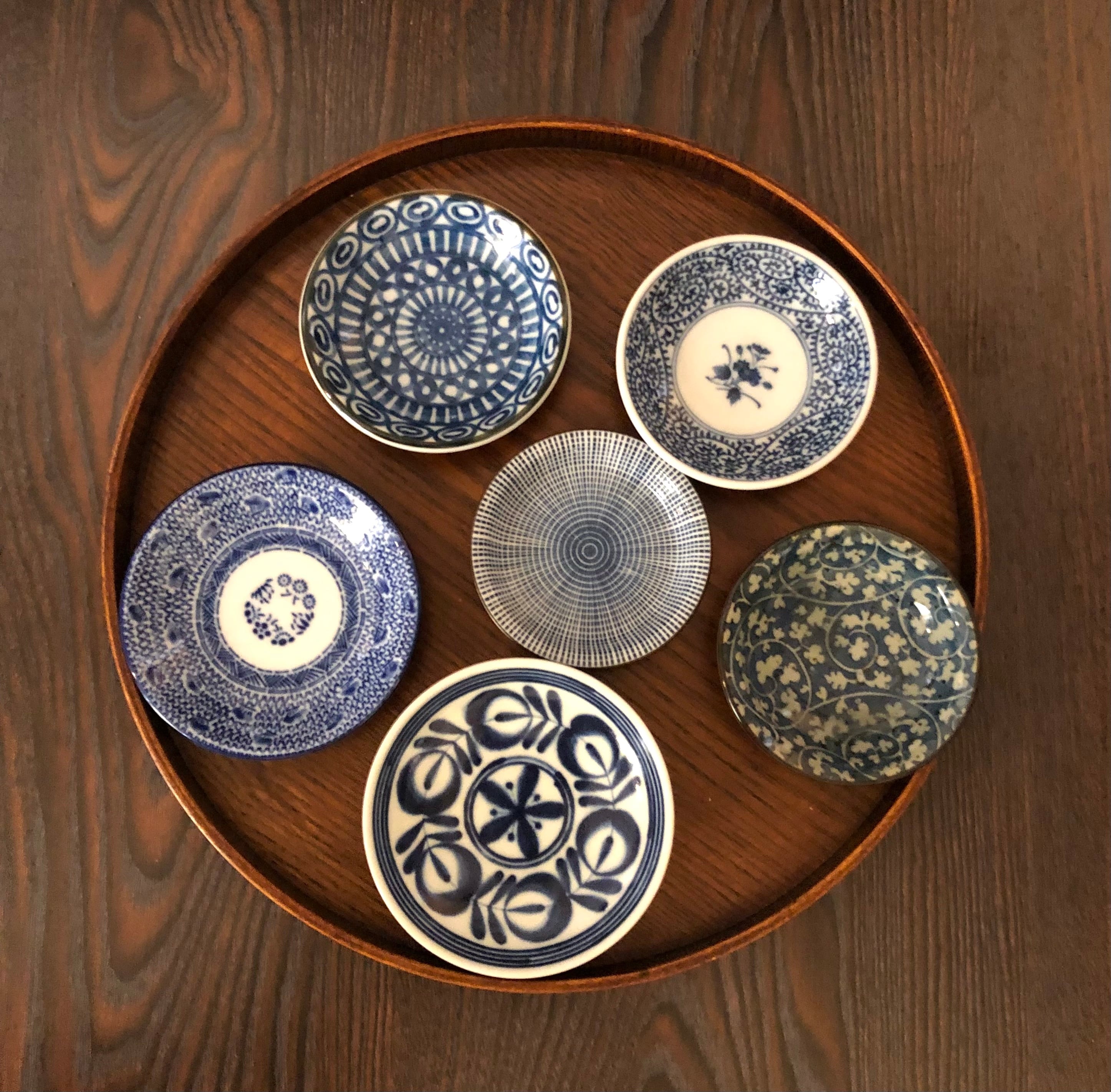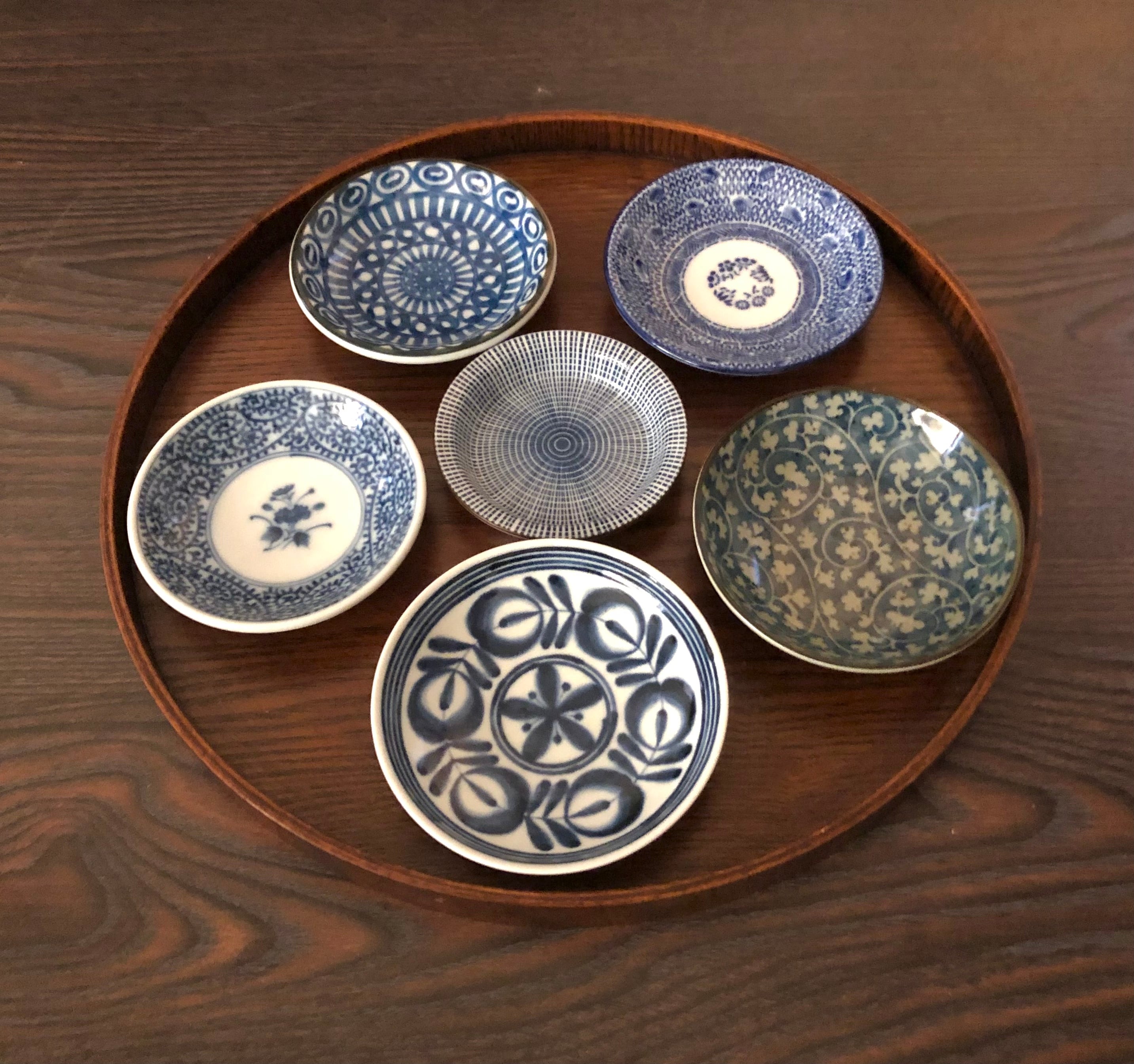 豆皿6個セット。伝統柄ですが、少し異国情緒のある皿を揃えてみました。。
