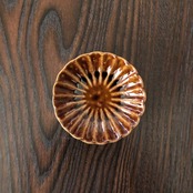 ローズつゆ草三寸皿、釉楽菊小皿飴茶、飴釉こより角皿、黄土こより角皿、飴釉削ぎ三寸皿、アメ斑点渕立の6種類。サイズはφ8.4〜9.5cmです