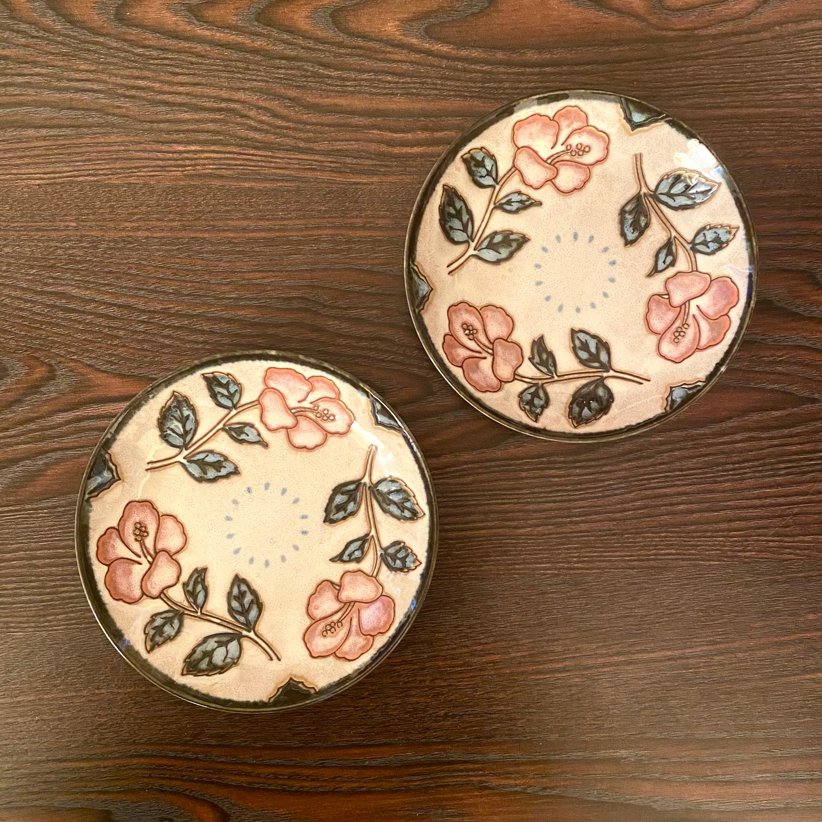【廃番】少し大きめの豆皿セット【琉球赤花】
