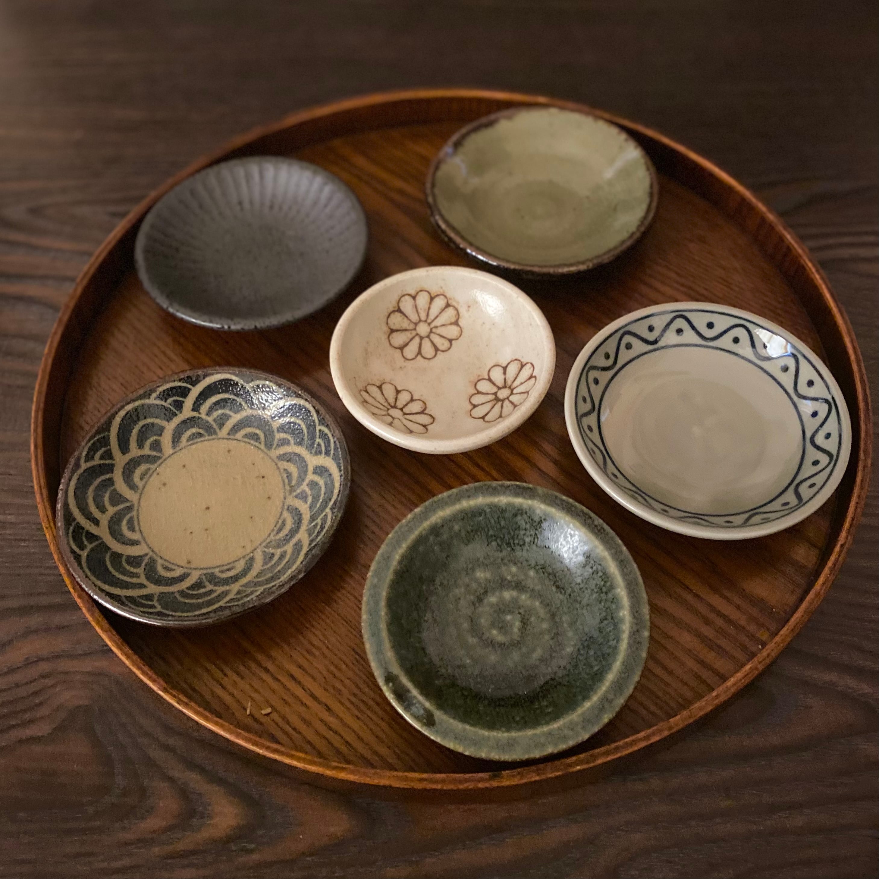 豆皿6個セット。個性的な柄物が入っているのに品よく纏まる様、組合せに苦心した会心のセットです。