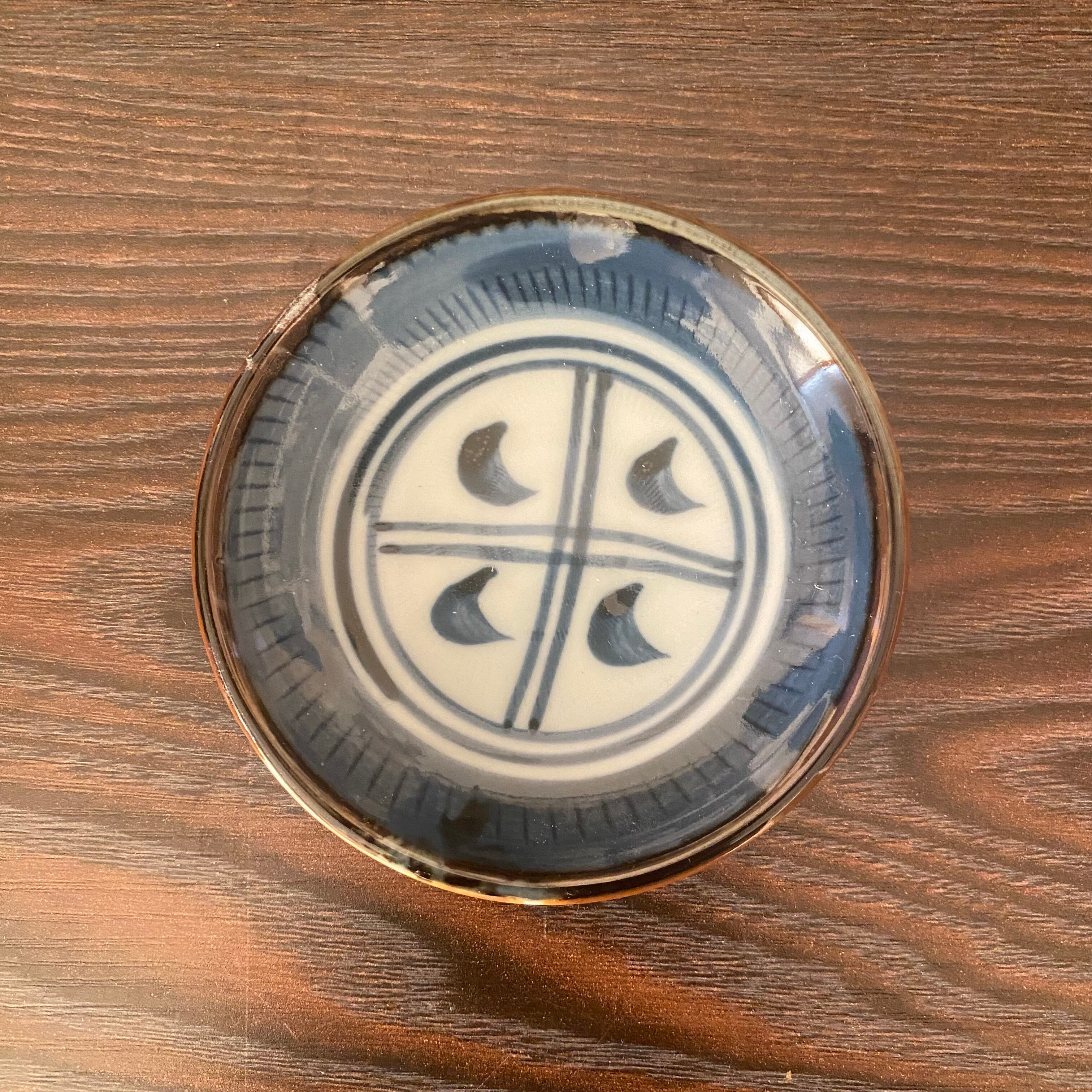 トチリ矢車薬味皿、手描アジロ薬味皿、古染間取丸紋薬味皿の三種類、サイズは9.3-9.5cmです。